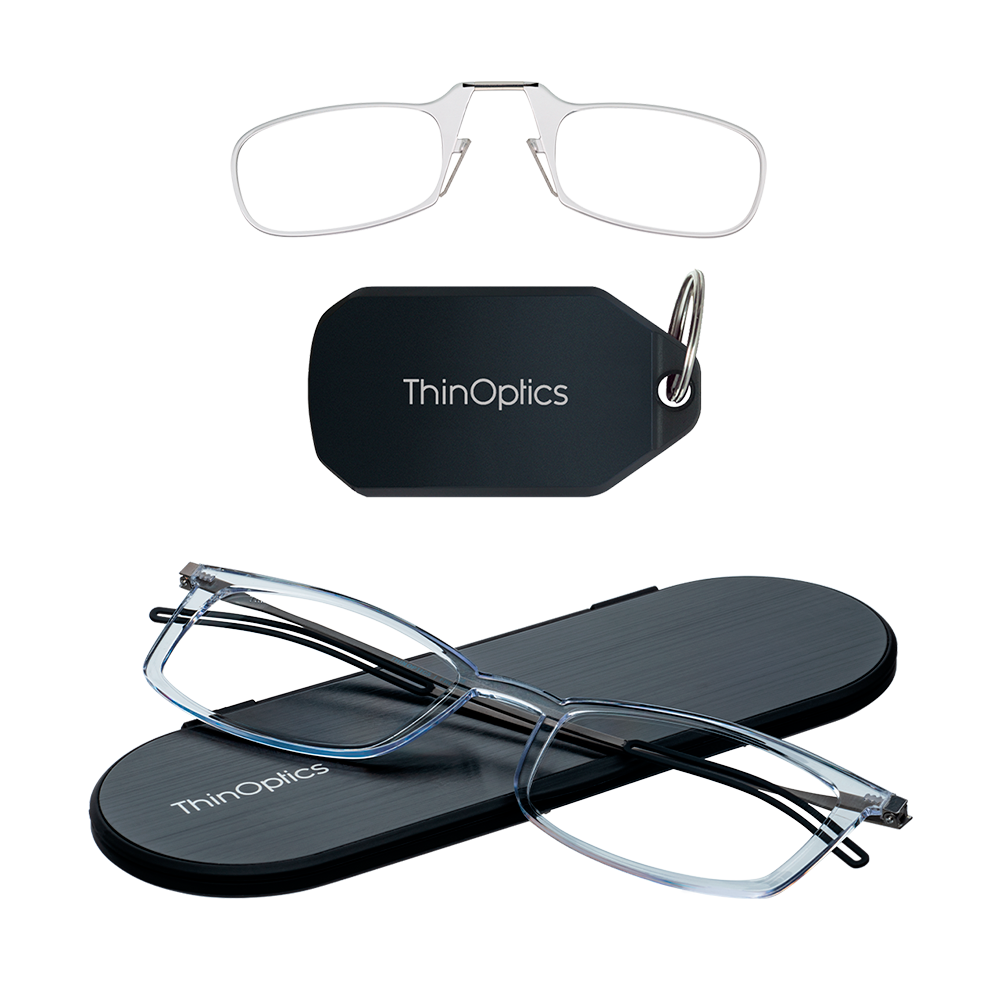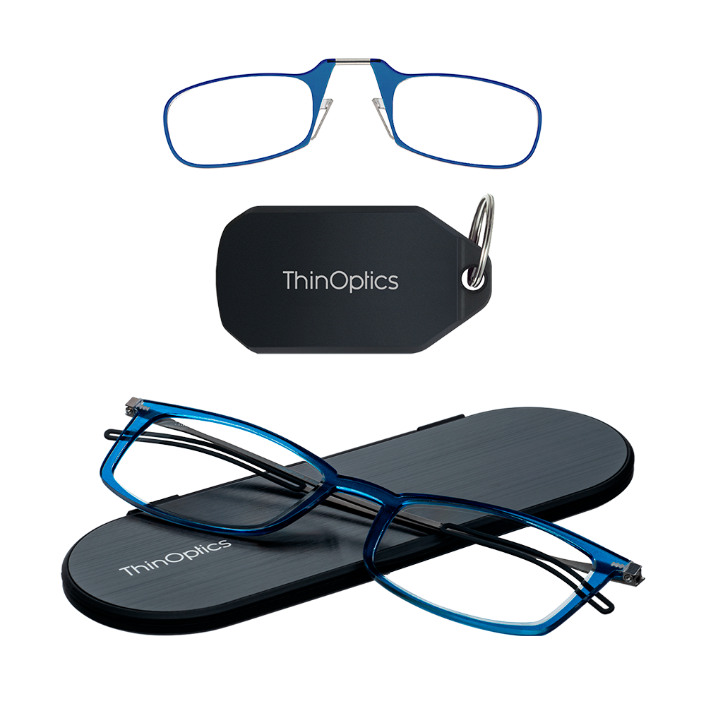 Choose from magnification strengths (+1.0 to +2.5 diopters) and frame colors (Black, Blue & Clear). One color selection applies to both items. Tailored for customers who enjoy ThinOptics' convenience and adaptability.